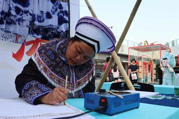 从遵义邀请来的非遗传承人现场演唱薅秧歌,以全新编曲手法和表现形式歌颂田间地头劳动者的美好生活,富有浓郁的本土特色,旨在以新的方式传承和发扬这一宝贵的非物质文化遗产。此外,闻名远近的苗族蜡染也来到现场,通过手把手教授,带领市民体验创作过程。