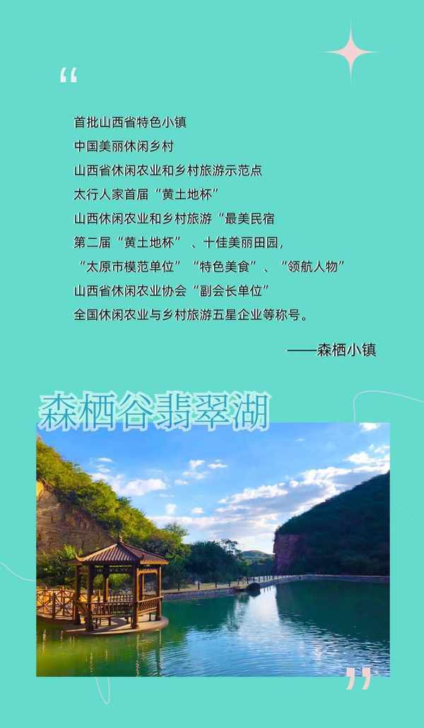 森栖小镇创新发展乡村旅游,积极开拓民宿产业链,在2019年至2021年间,获得“中国美丽休闲乡村”、“山西省休闲农业和乡村旅游示范点”、“太行人家”首届“黄土地杯”、山西休闲农业和乡村旅游“最美民宿、第二届“黄土地杯” 、十佳美丽田园,被评为“太原市模范单位”、“特色美食”、“领航人物”、山西省休闲农业协会“副会长单位”、2020年全国休闲农业与乡村旅游五星企业等称号。