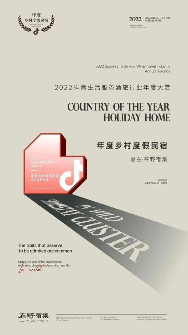 很荣幸,崇左在野宿集在这次榜单的评选中,成功获评 2022年度抖音生活服务“年度乡村度假民宿”。