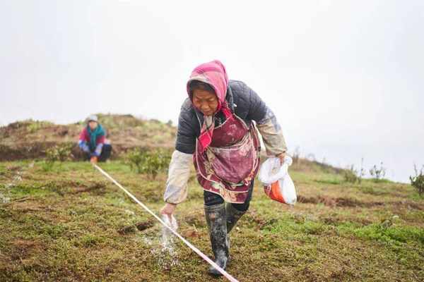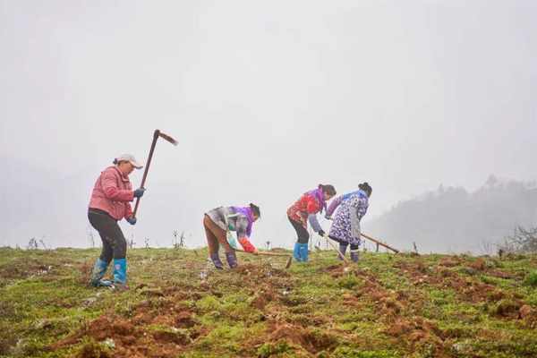 正忙着挖种、打窝、栽种