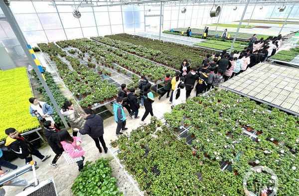 除了赏花之外,市民还能参观占地达100亩的智慧种苗工厂。作为重庆嘉卉农业产业园的“心脏”,智慧种苗工厂采用全球领先的穴盘育苗技术、人工光培育技术和水培技术,工厂化、规模化、智能化生产各类蔬菜、花卉、茶叶及其他各类经济林木种苗,产能为每年5000万株。整个项目完全建成后,加上机器人智能育苗、手机远程控制、物联网技术的运用,可满足数十万亩蔬菜基地用苗及其他经济作物种苗,带动当地产业发展,赋能乡村振兴。