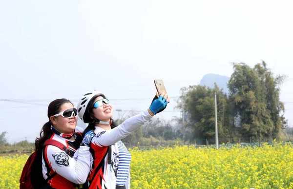 “我们两个闺蜜相约一起骑行漫游柳江,感受春天的魅力。今天阳光好,油菜花开得也很美,我们喜欢玩抖音,可以多拍一些美美照和视频了。”骑行爱好者杨女士和李女士早早出门,沿着乡村道路一路骑行,看到花开正好的油菜花田,驻足拍照,尽情感受大自然的美。