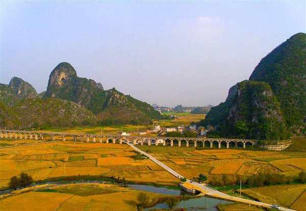 自己十年前在柳州市读书的时候,曾经骑行过这条乡村公路,确实为这里的田园风光所折服。柳州有山水,除了市区的柳江山水外,当属柳州西部的山水最美(个人看法)。渡村至成团公路,严格来说,从渡村至成团至福塘乡的公路沿线都非常美,尤其是秋天的时候,更加美,因为在秋天的时候,这里的稻谷变黄了,然后再爬上一座小山(现在可以用无人机拍了)取景,分分钟钟出大片。