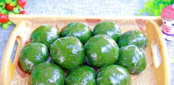1、艾草洗净。在一锅开水中加入一些小苏打,加入月桂叶,煮约两分钟。烧好后取出,快速过冷水,破壁机加水调成细泥,过滤,烧开艾草汁170克,准备糯米粉170克,加入糯米粉30克.加入米粉、白糖15克、猪油、艾草汁,拌匀。然后用手揉面团。