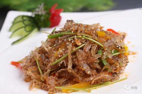在淡水鱼中,黑鱼和草鱼的皮相对较厚,富含胶原蛋白也较多。鱼皮遇沸水后,胶原纤维立刻紧缩,使鱼皮弹性增强。再投入冰水中极速降温,相当于给紧缩的胶原纤维“定型”,这时鱼皮吃起来特别脆弹——粤菜中的“凉拌鱼皮”就是这样做出来的。