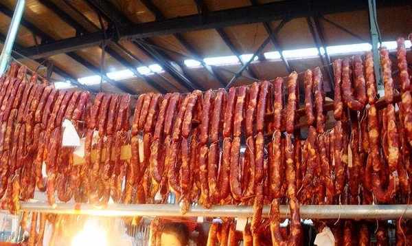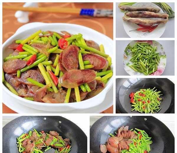 《腊肠炒蒜薹》春笋鲜嫩爽口,因为这里春天来得晚,价格也比较贵。这里的大部分蒜苗都是从别处供应的。这道家常菜用大蒜和香肠调味,吃起来爽口。