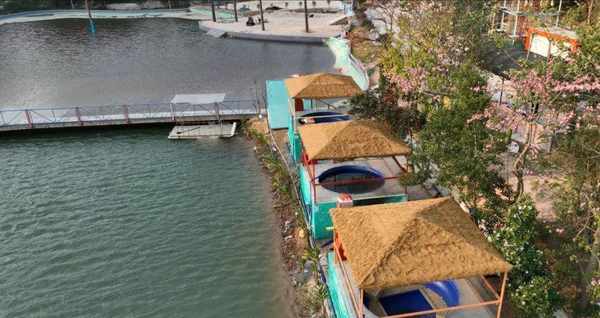 解决了吃住问题,陈峰开始完善细节。这片地有山有水,陈峰重新修整了雁鹰湖,种植花木,平整路面,还往湖里放了几千斤鱼苗。在不妨碍生态的前提下,完善水上项目。