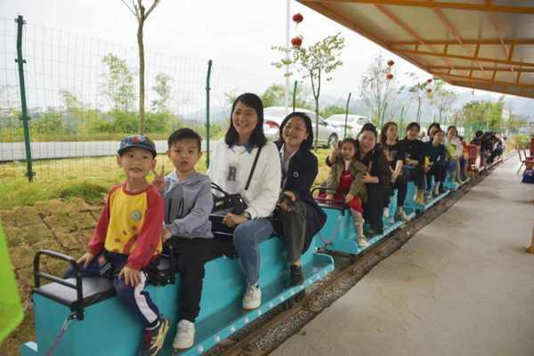 宁明花山温泉小镇趣麓营主管农婷介绍,他们针对小朋友设有无动力乐园,设有小火车,大人们可以来这里烧烤、露营。三八妇女节期间人流量比较大,帐篷基本订满。
