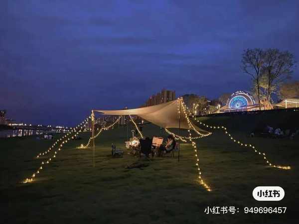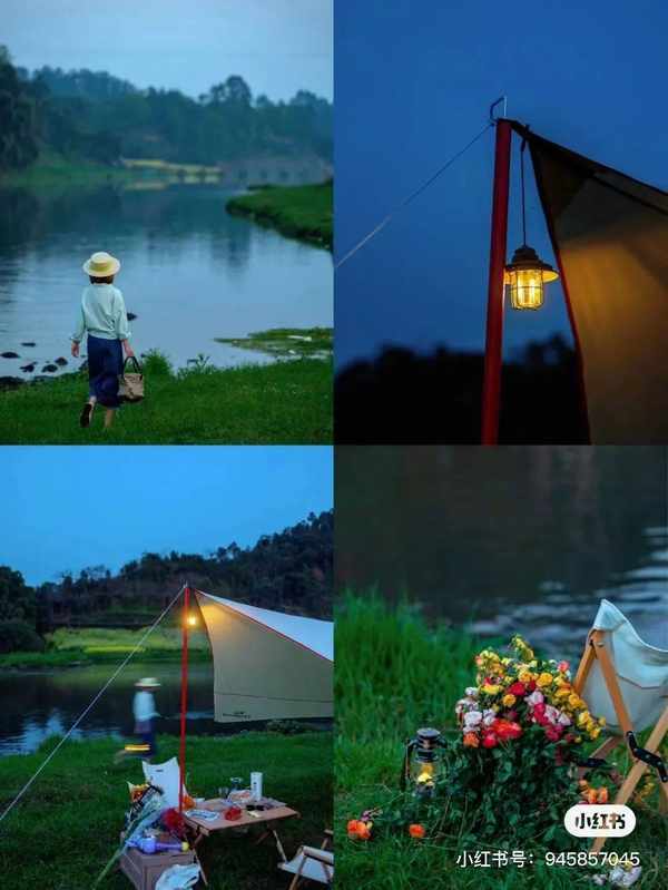 等夕阳落山,露营灯亮起,坐在天幕下,听着溪水潺潺的声音,看着远处的风景,氛围感满满。