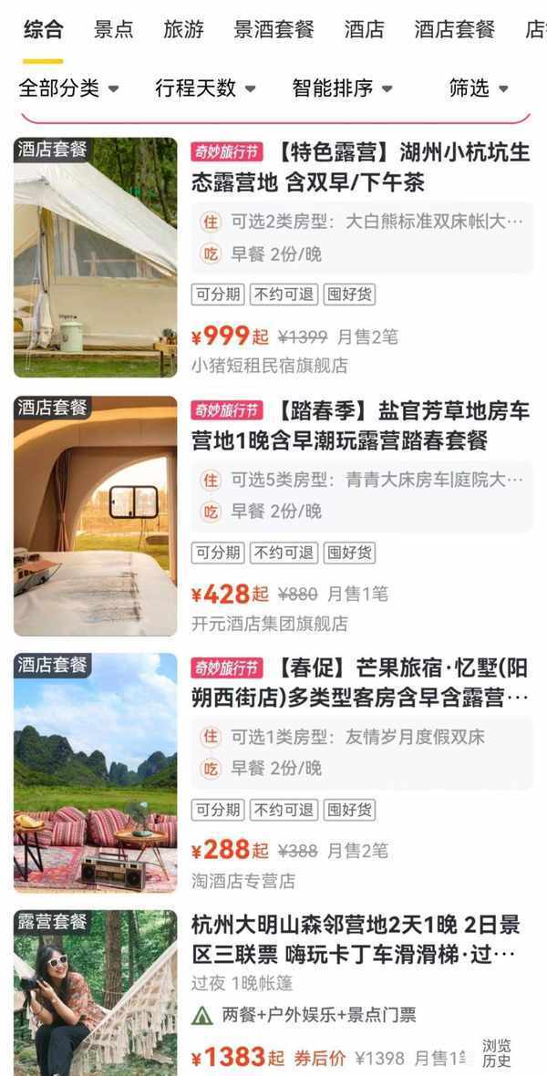去哪儿数据显示,2023年2月露营地预订量比2022年增长六成,2月27日~3月5日的一周,露营地预订量比前一周(2月20日~2月26日)增长一成。