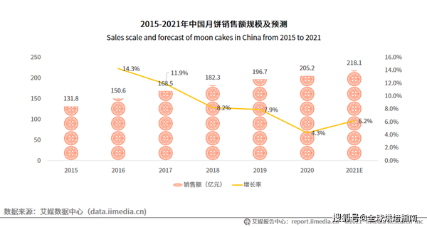 中國中秋月餅市場銷量逐年增長,預計2021年中國月餅銷售規模將達218億元。
