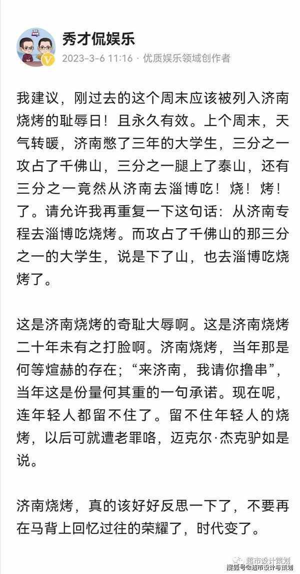 最近淄博的烧烤在山东出圈了!热度非常高,让作为串都济南的很多烧烤人,非常失落。盘点这个现象的出现,让我们重新去认识下餐饮或者零售的发展根基吧,或许再怎么升级,价格始终是绕不过去的一道门槛。