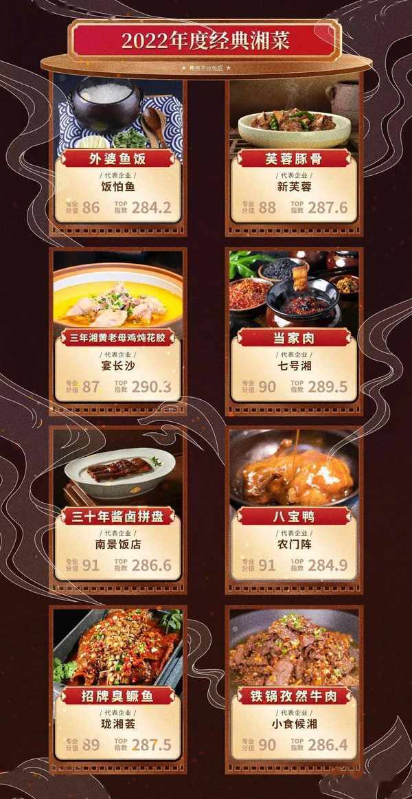 回首2022年,湘菜的发展起起伏伏,但依然有无数优秀的湘菜作品涌现,为湘菜行业的发展增添了不少星光。20道爆款湘菜,是受到市场的认可与欢迎、最能够代表当下潮流的湘菜菜品,是名副其实的“年度湘菜”。