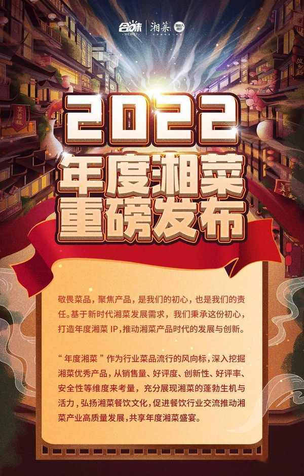 2022年度湘菜携光归来,是引领行业走向的风向标,更是对湘菜发展方向的总结和展望。这不仅是对湘菜人的努力付出的肯定,也是对湘菜产业发展的总结和激励,更是属于我们湘菜人与湘菜共同的故事。