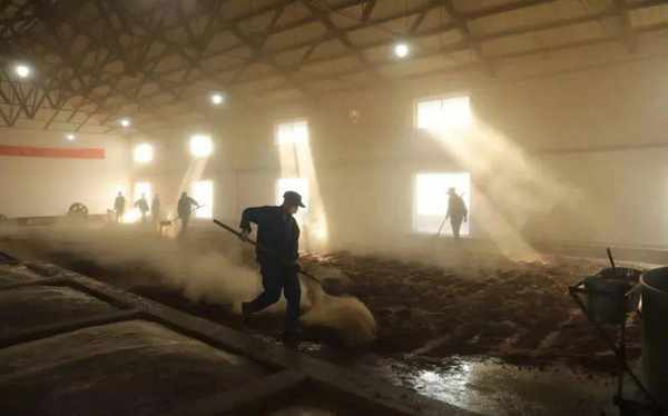 3月 10日,蔡洪坊酒业传统酿酒车间,铁锨翻转、酒糟飞舞、蒸汽氤氲、酒香扑鼻,一派忙碌的景象。酿酒师傅夏建华和工友频繁往返穿梭在朦胧蒸汽中,蔡洪坊酿酒人的一天,便从屋顶上蒸腾的雾气开始了……