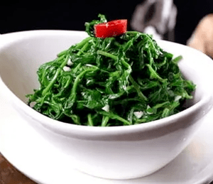 枸杞叶500g,熟竹笋50g,精盐、料酒、味精、姜末、白糖、生油各少许。枸杞叶洗净沥水,竹笋切丝,与枸杞叶一起下油锅,煸炒熟时下盐、白糖、味精起锅。