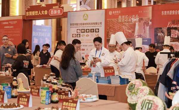 本次2023东莞餐饮人大会共吸引了近60家优质服务商,参展企业除了餐饮业,更是涵盖了其他各行各业,给东莞餐饮人提供了良好的产品展示及资源合作洽谈的机会。他们在现场利用广告牌及展位开展试吃、路演等方式,吸引现场人员驻足。