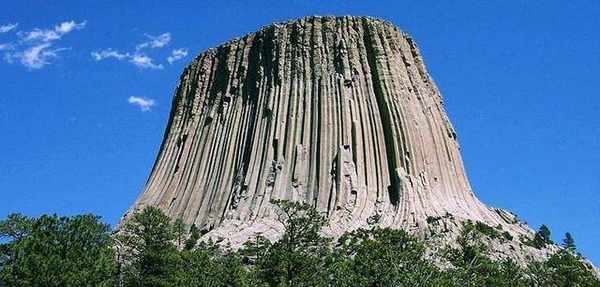 这座山便是魔鬼塔,它位于国外西部东北部,在贝尔富什河附近的丘陵上。魔鬼塔历经5000多万年的时间,经过沉积、地层变动、岩浆推挤等复杂的变化过程,逐渐形成今日的一座巨型的圆柱岩石。魔鬼塔附近几乎没有什么高大的建筑物,都是平地,因此它在这片地方显得十分突兀,自然看起来就十分高了。在没有雾的情况下远望这里,便能清清楚楚地看到魔鬼塔。