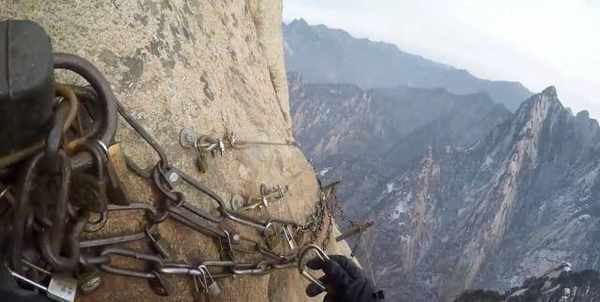 第二个是克里米亚的木质吊桥,这座吊桥建在山顶之间,底下就是万丈深渊,仅仅是由几根绳索和木板组成,走在上面时,桥身还会晃动,让人的肾上腺素迅速飙升。第三个是华山的长空栈道。