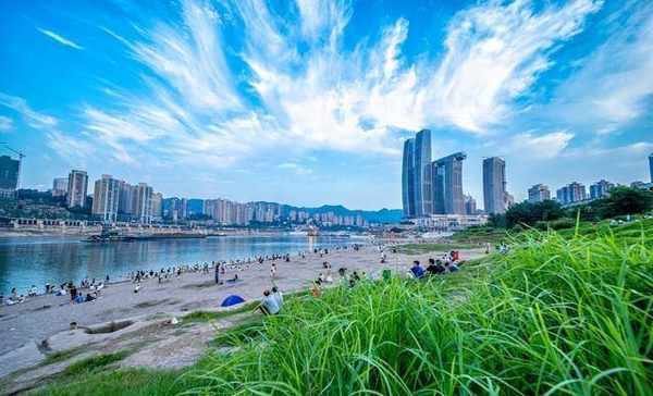 这个地方离重庆“马尔代夫”不远,而且靠江那一片已经改造成了滨江休闲运动公园,晚上很多市民跑步、散步、跳舞………还有带小孩在岸边玩沙的,很热闹。