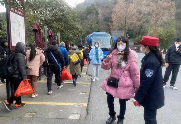 武当山游客服务中心、景管、公安交警、消防、旅游车队等涉旅部门人员持续坚守岗位,做好旅游咨询、秩序维护、交通疏导等服务保障工作。游客服务中心启用排队系统,合理分流应对游客高峰,确保游客有序验票乘车进入景区;景管、索道公司等部门加派人员力量、科学疏导游客。景区旅游大巴车运力充足,旅游秩序井然,春节氛围浓厚,游客们祈福、游玩兴致高涨。截至下午两点,仍有不少游客排队前往景区。