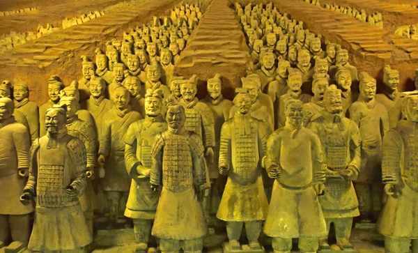 秦兵马俑仿真人真马制成现如今保留着8000多个,一眼望去栩栩如生,场面宏大,威风凛凛。