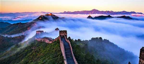 巍峨的万里长城始建于春秋战国时期,著名的“烽火戏诸侯”就源于此,但是此时的长城还较短。秦灭六国一统天下之后继续扩建,始称为万里长城,最后修建的是明朝。历经古人的千辛万苦造就今日奇观,现全长 2. 1 万千米,横跨 15 大省,横卧在高山之间,犹如一条巨龙。