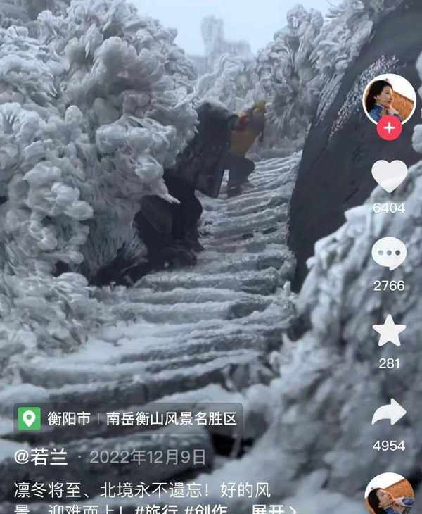 在2022年12月28日,南岳景区就下了大雪,当时在抖音上看到雾凇非常漂亮,有游客在溜冰,从视频上看是同样的位置,作为景区同行,