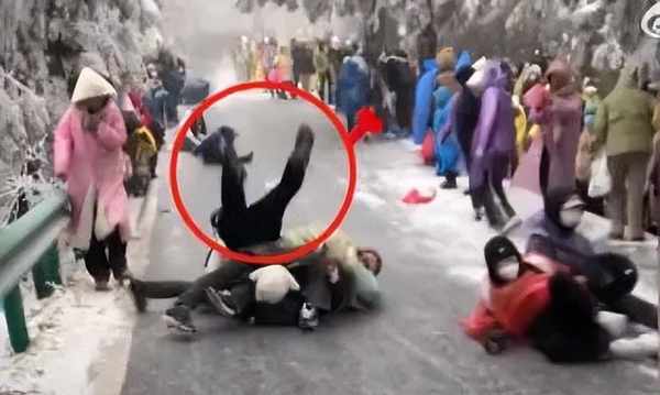 在1月14日左右,湖南迎来了2023年首场寒潮,旅游景点南岳衡山中心景区(简称:南岳景区)出现的雾凇、云海等冬景奇观,吸引了大量游客前往观赏。1月15日,个别游客自发在景区道路上滑行玩乐,有游客被撞倒,此事引发关注。