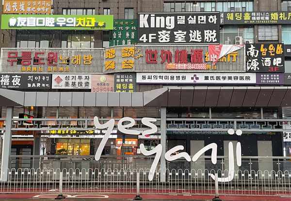 最后呢,可以打卡延边大学对面的网红墙,朝鲜语汉语的双语门牌整齐的铺满了整面墙壁,瞬间给人一种出了国的错觉。