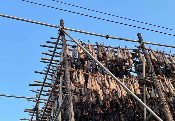 温暖的海洋性气候让这里成了明太鱼晾晒的主要基地。明太鱼学名黄线狭鳕,明太鱼时至今日也成了朝鲜族人民喜爱的食物之一,如果你偶尔看过一两部韩剧就知道他们同样很喜欢明太鱼,整个和龙晾晒的明太鱼大多出口韩国,韩国人餐桌上百分之八十的明太鱼都是来自和龙。