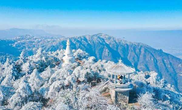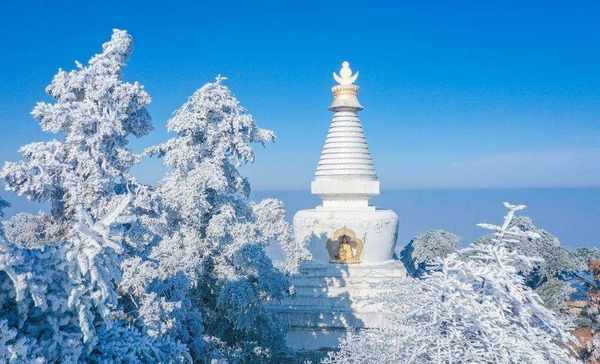 诺那塔屹立在小天池山顶,是近代著名大活佛诺那呼图克图的佛骨塔。诺那塔塔身整体为白色,是一座典型的藏式佛塔。这里海拔高,又地处北风口,雾凇景观尤为壮观,吸引了众多游人登临。