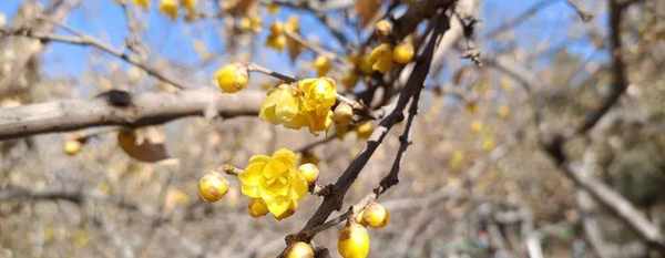 连续几天零下十几度的严寒,出门的人不多,午后的公园里,阳光虽好,人却稀少。蜡梅园中,几棵狗牙都开了,素心还大多是花苞,有几朵开的,也难闻到往年浓郁的香气,一摸花瓣,居然又干又脆,一捏就碎了。看来这些花是被少见的严寒冻伤了。