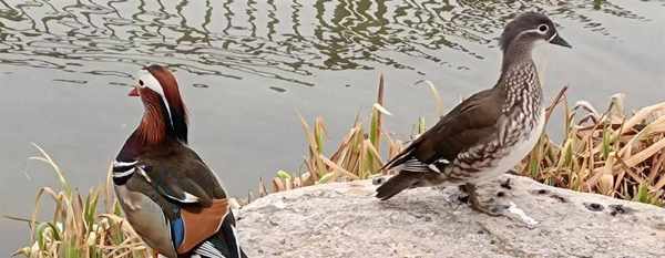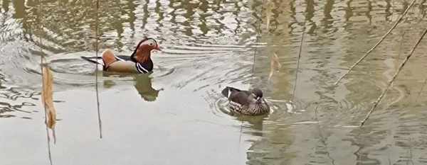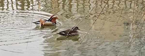 这是第一次在现实中见到这种水鸟,以前只见过画上的鸳鸯还有村里巧手的姑娘绣在枕套上的鸳鸯戏水,没想到现实中的它们长得和画上的一样。
