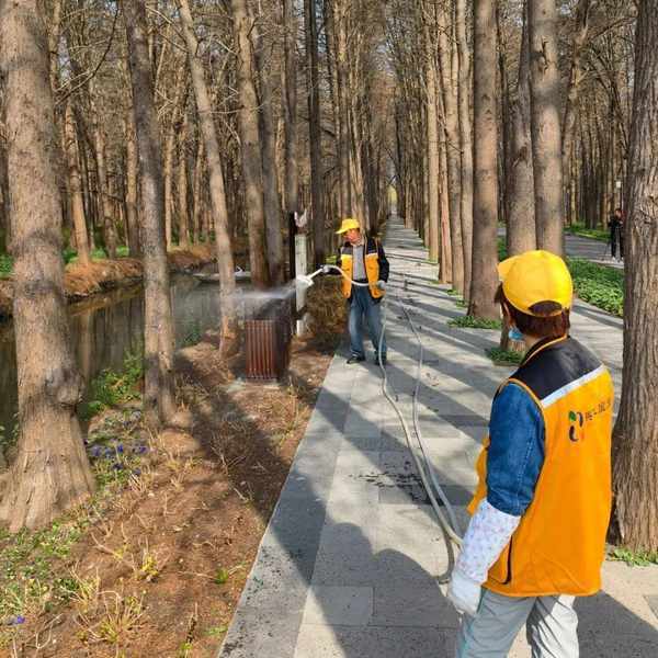 林间,身着橙黄工作服的景区工作人员正在洒水养护绿植,斑驳的光影和着水珠不断在花、叶间跳动;早早到来的游客们一边欢快地交谈,一边选着中意的角度拍照留影……春日气息在这里俯拾皆是。