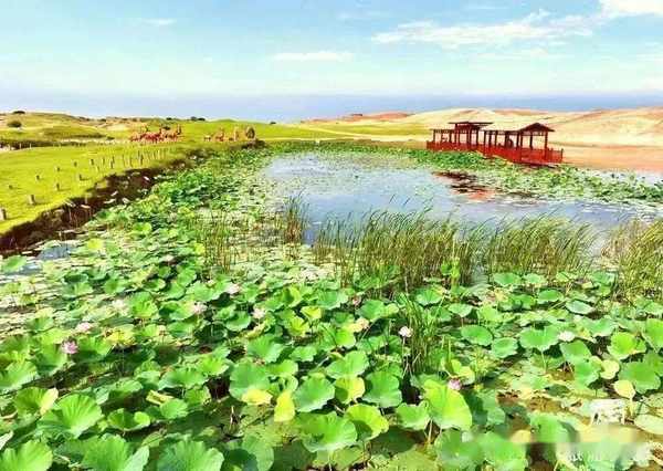 草甘沙漠景区为了更好的服务前来观光的游客,打造了月牙泉观景木栈道,让游客能够更近距离的观赏沙漠与荷花的绝妙搭配、沙漠绿洲的恢宏壮观,同时让游客身临其境感受大自然的美妙!