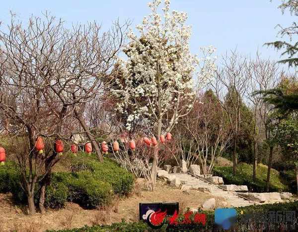 园内的各类绿植都已焕发生机,玉兰花已经大面积盛开,农技师们正在大田中修剪牡丹,一摞摞修剪后的牡丹残枝堆放一旁,部分牡丹已经长出绿色枝叶,小花苞已经形成,此外,工人们正在园内搭建展销棚、翻新或新建观赏设施,以便在牡丹文化旅游节期间展销牡丹深加工产品,增加游客入园观感。