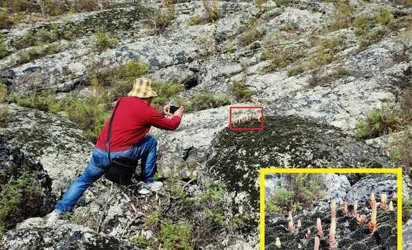 图七 我在山岩上拍风景,有人在山岩下拍拍风景的人。