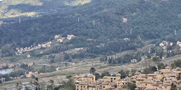 在哈尼四季观景台可以看到,在哈尼梯田高低各处都住着很多原住民的;