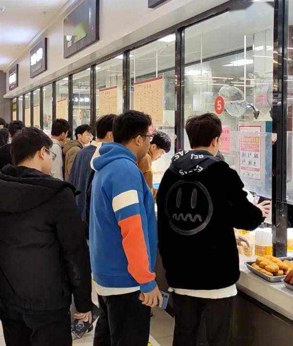 食堂早餐档口排满了人(视频截图)