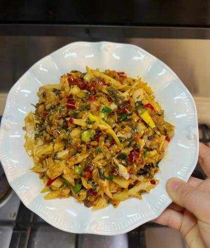 进入三月中旬以后,各地的气温持续攀升,有些地方都开始穿短袖了,感受到特别暖和,天气变得越来越好,天气变好了,空气非常干燥,特别容易上火,脾胃功能不和,胃口会越来越差。开春后,总是特别忙碌,中午都是点外卖,公司附近的外卖都吃腻了,一家人晚餐就不出门吃饭了,准备给家里人准备一大桌的菜肴,有菜有汤,有鱼有肉,老公和孩子都赞不绝口。今天分享我们家晚餐的菜肴之一——酸菜笋尖炒肉丝,酸脆又开胃,绝对是米饭的“手”。很多人还不会制作这款酸菜笋尖炒肉丝,到底应该如何制作呢?跟着小编来瞧一瞧吧。春季之后,若条件允许,多给家人吃这菜,酸脆开胃,老少皆宜。