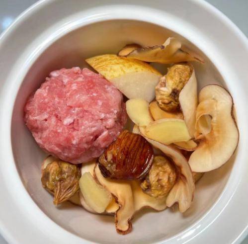 食材清单:选购无花果几个(无花果是一种水果,晒干后可以食药两用,具有清肝润肺的效果,广东人经常用它煲汤喝),雪梨一个(雪梨的水分特别足,吃起来味道很甘甜,其实可以用来炖汤喝),新鲜猪肉200克左右(猪肉分为很多部位,新鲜的肉末可以炒着吃或炖丸子汤),两个蜜枣,温水少许,葱和姜少许,生姜若干片,一个鸡蛋清,半勺料酒,生抽半勺,一丢丢胡椒粉,其他。