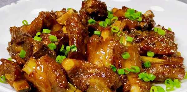 3、全部都煮烂后,把里面的香料都夹出来,再转大火把汤汁收浓,汤汁也把它淋到排骨上,最后再撒上一点葱花,红烧排骨就做好了。