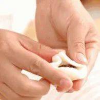 取其中一小块,放入手中,揉圆按扁,整理成饼状。