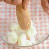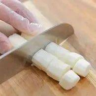 将山药洗净去皮切块。处理山药的时候,建议带透明手套或者套个保鲜袋再来操作,以防过敏导致手痒。