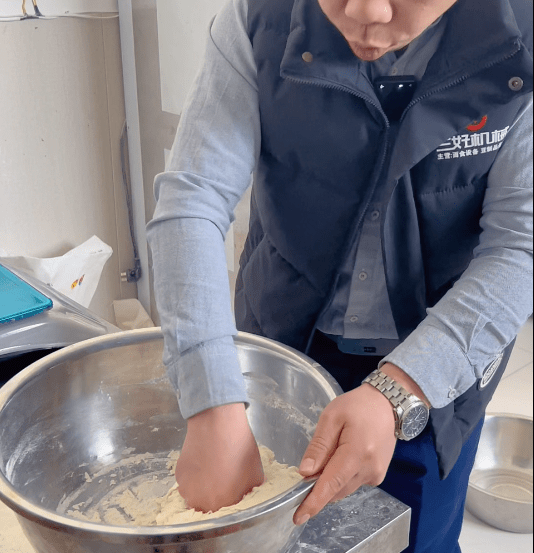 这个小伙伴非常用心,而且这个问题也是很多老铁经常问三好的,用仿手工包子机制作包子的面团和手工到底有什么区别,以及面粉持水量应该加多少,其实这个过程当,老铁完全可以忽略,意思就是说,面粉持水量的多与少取决于面粉的质量,当然这里有一个技术指标,那就是和好的面不能粘手,在这里三好也给屏幕前的老铁分享一个面粉加水量参考值(5.2-6两之间),当然这个和面粉的质量有直接关系。