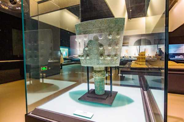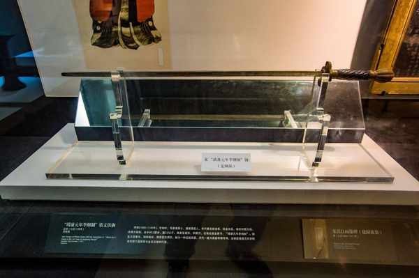 展柜内陈列着北宋抗金名臣李纲所用的锏,锏这种兵器在宋时只有高级将领才可以使用。隔着玻璃依然能感受到其沉重的历史气息。