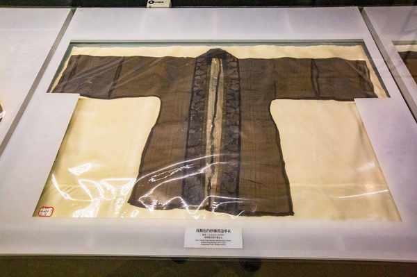 出自南宋的浅褐色绉纱镶花边单衣,已经失去了原有的色彩和光泽,依然可以从精美的纹路、简洁的剪裁上感受到宋时汉服的清雅美丽。