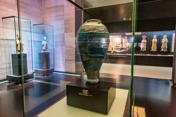 美丽的孔雀蓝釉瓶来自古波斯,是博物院的镇馆之宝之一。瓶身高达74.5厘米,在众多文物中因独特的颜色格外亮眼。