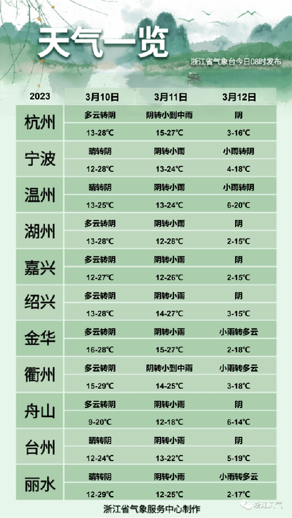 省气象台预计,11日白天,浙西地区多云转阴。
